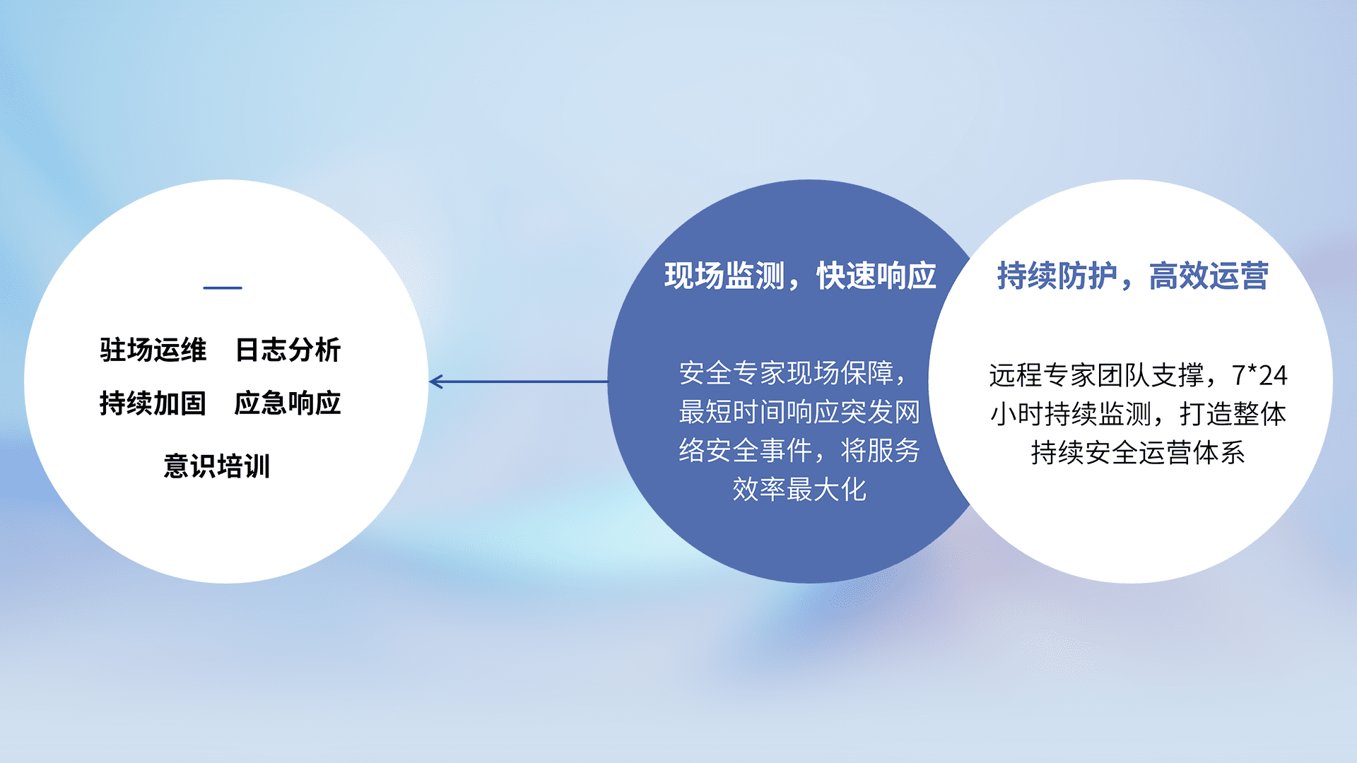 7X24小时持续监测安全事件,保持安全策略有效性,降低资产脆弱性风险,,精准拦截黑客攻击,,减少被黑客利用的机会,,,,第一时间遏制,,,降低损失。。。